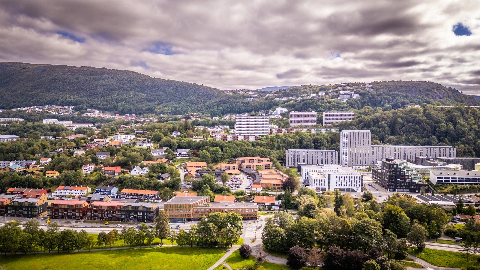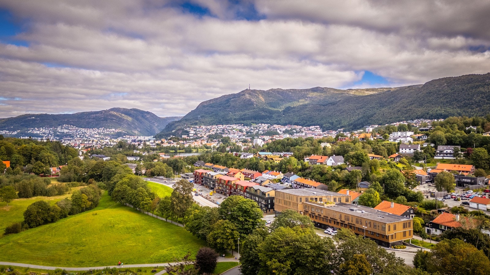 Fantoftparken har en attraktiv beliggenhet langs bybanen, og sykkelavstand til Bergen sentrum.