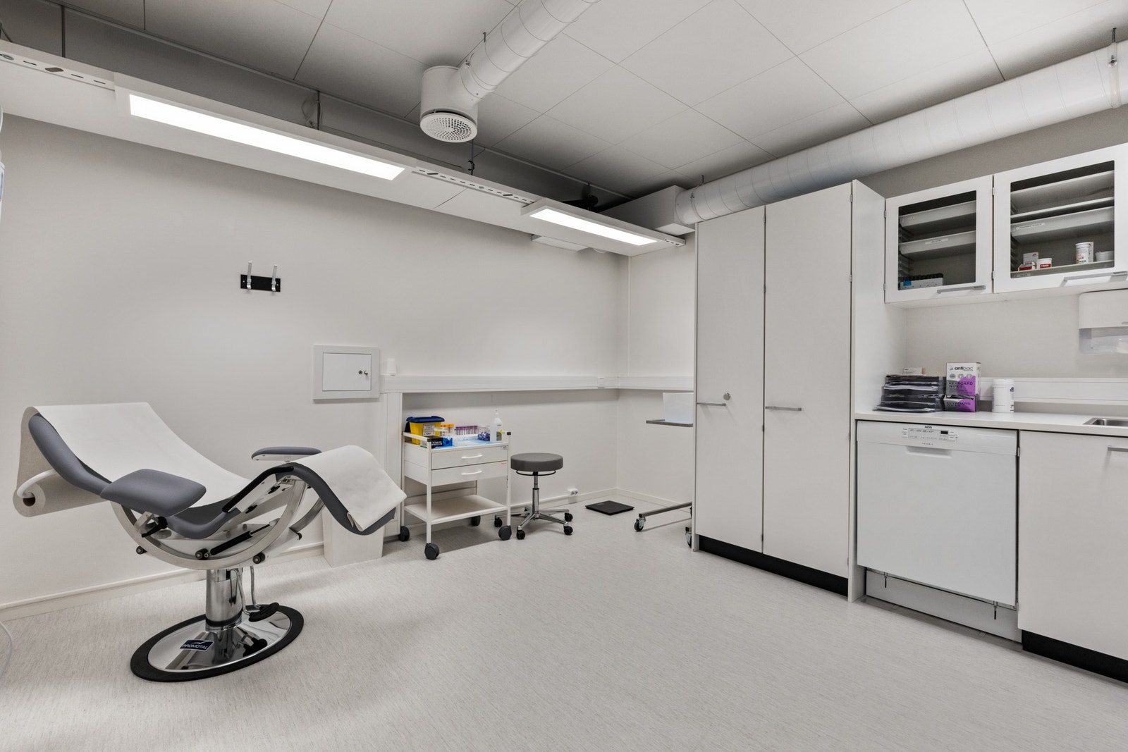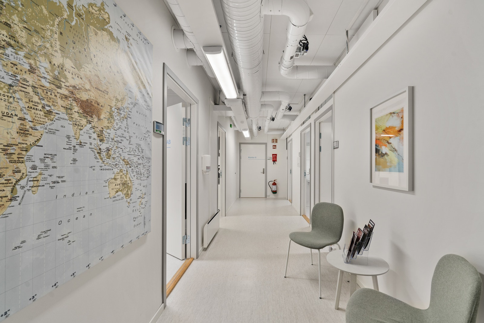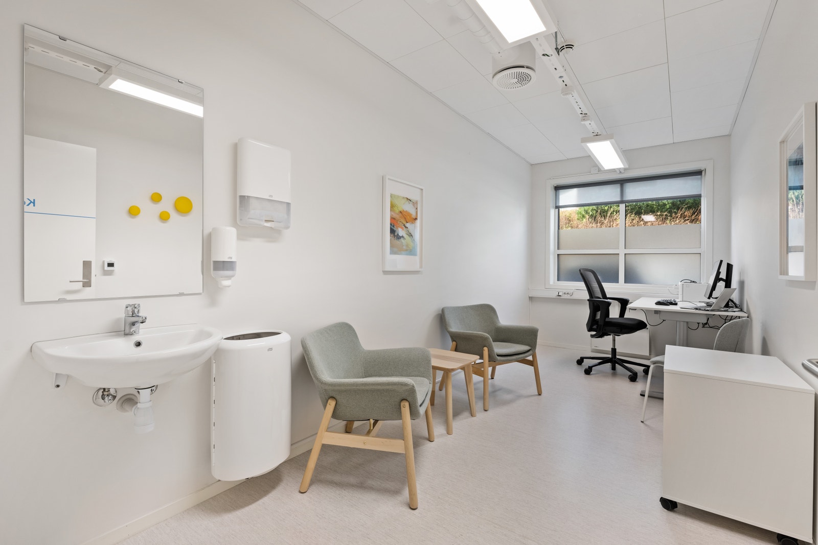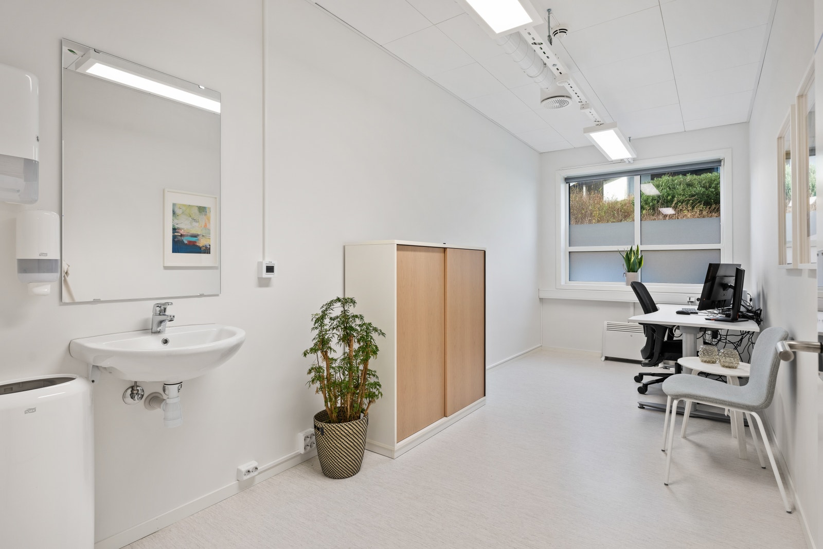 Egen inngang, 6 legekontor med vask, lager, pauserom, lab, hcp rom, og garderobe.