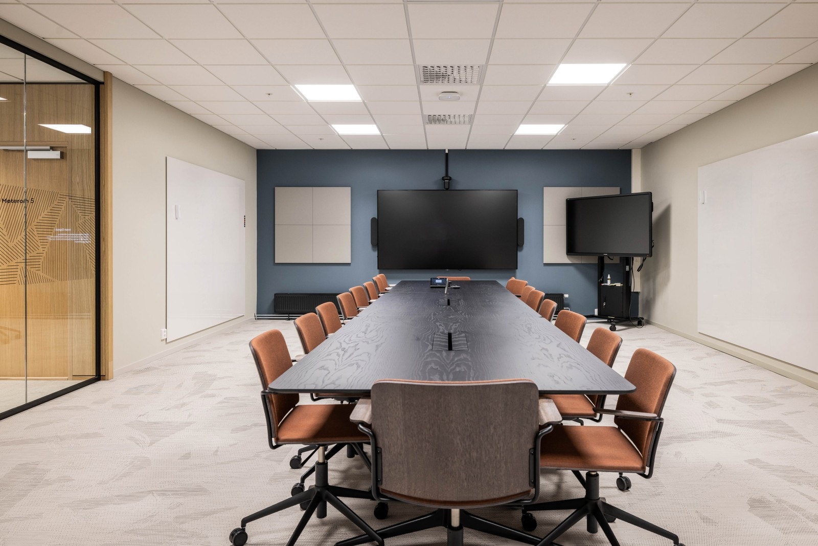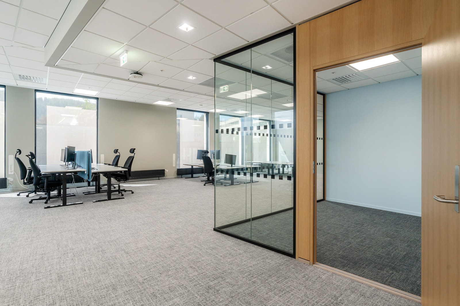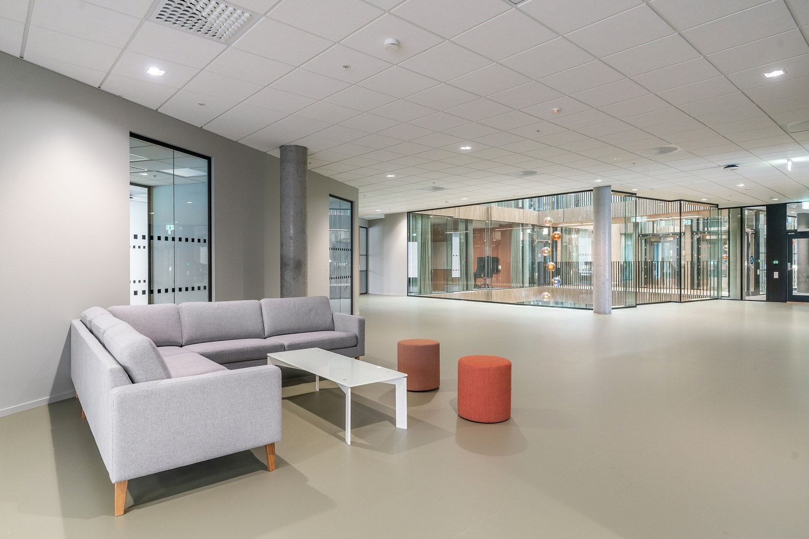 Nå er det ledige, innflyttingsklare kontorlokaler i byggets 5. etasje. Her får du en optimal miks av åpne landskap, prosjektsoner og gode møterom/støtterom – perfekt for moderne arbeidsformer.