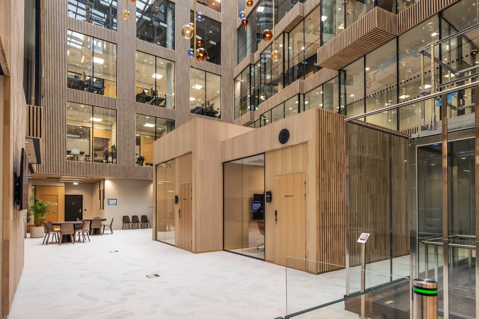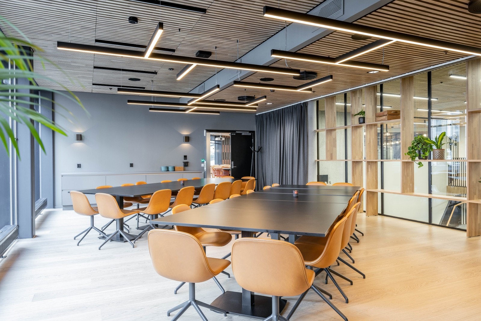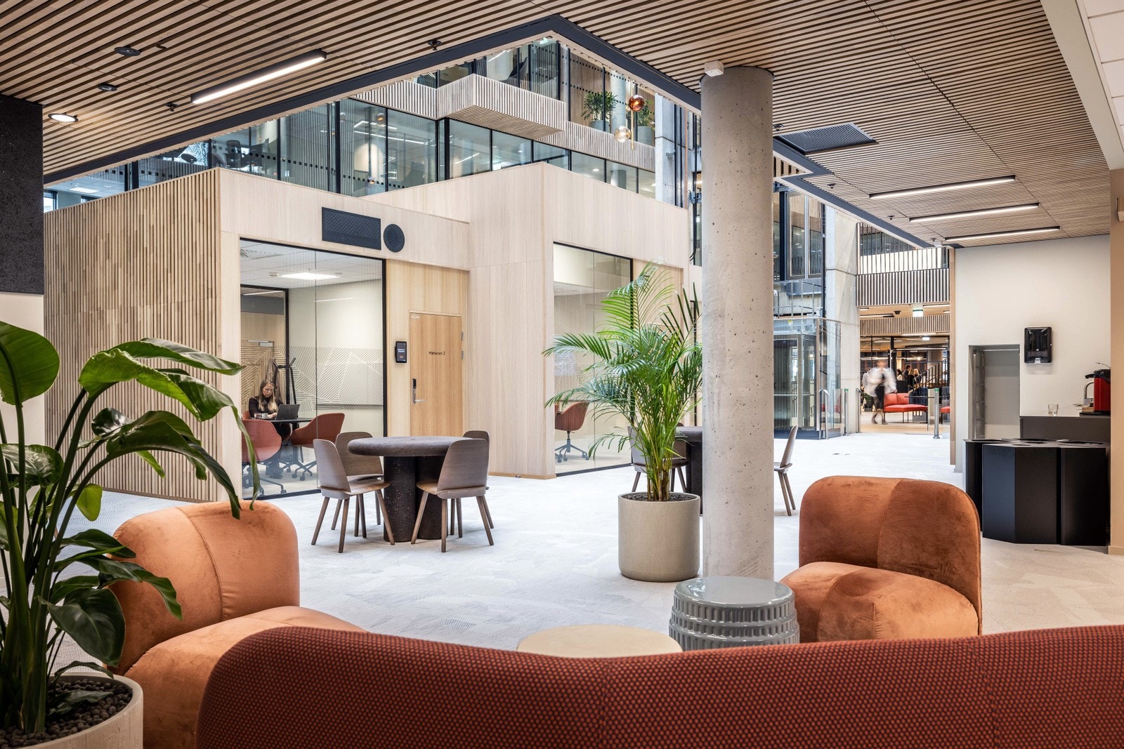 Nå er det ledige, innflyttingsklare kontorlokaler i byggets 5. etasje. Her får du en optimal miks av åpne landskap, prosjektsoner og gode møterom/støtterom – perfekt for moderne arbeidsformer.