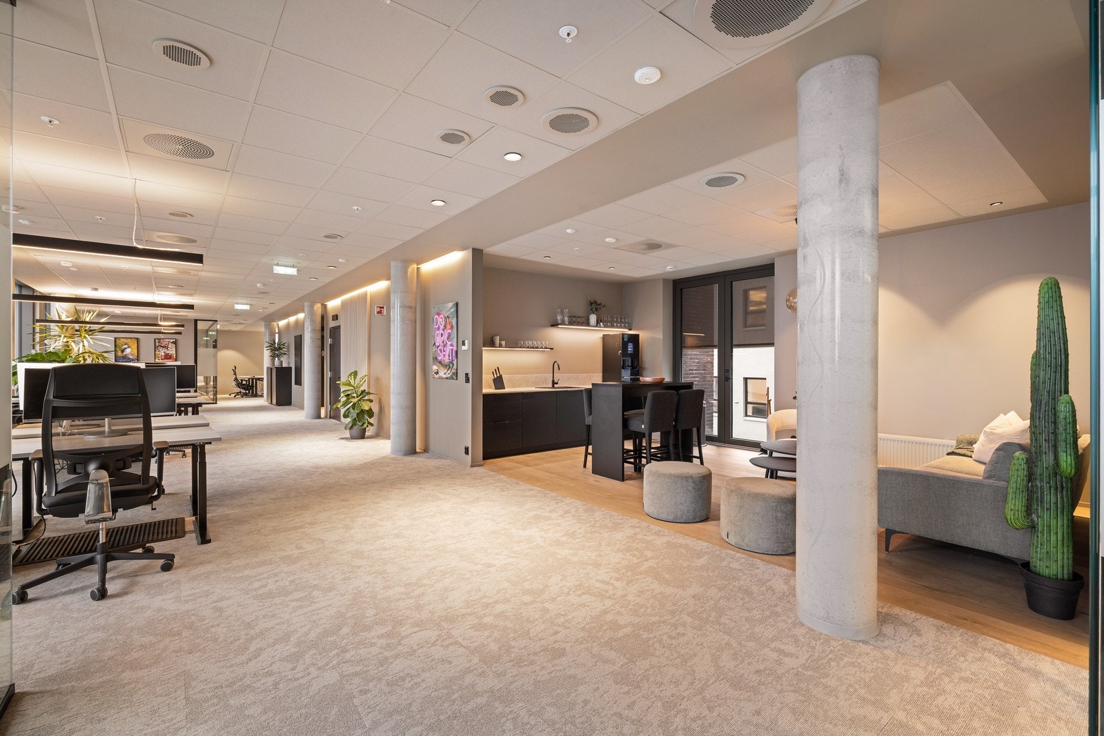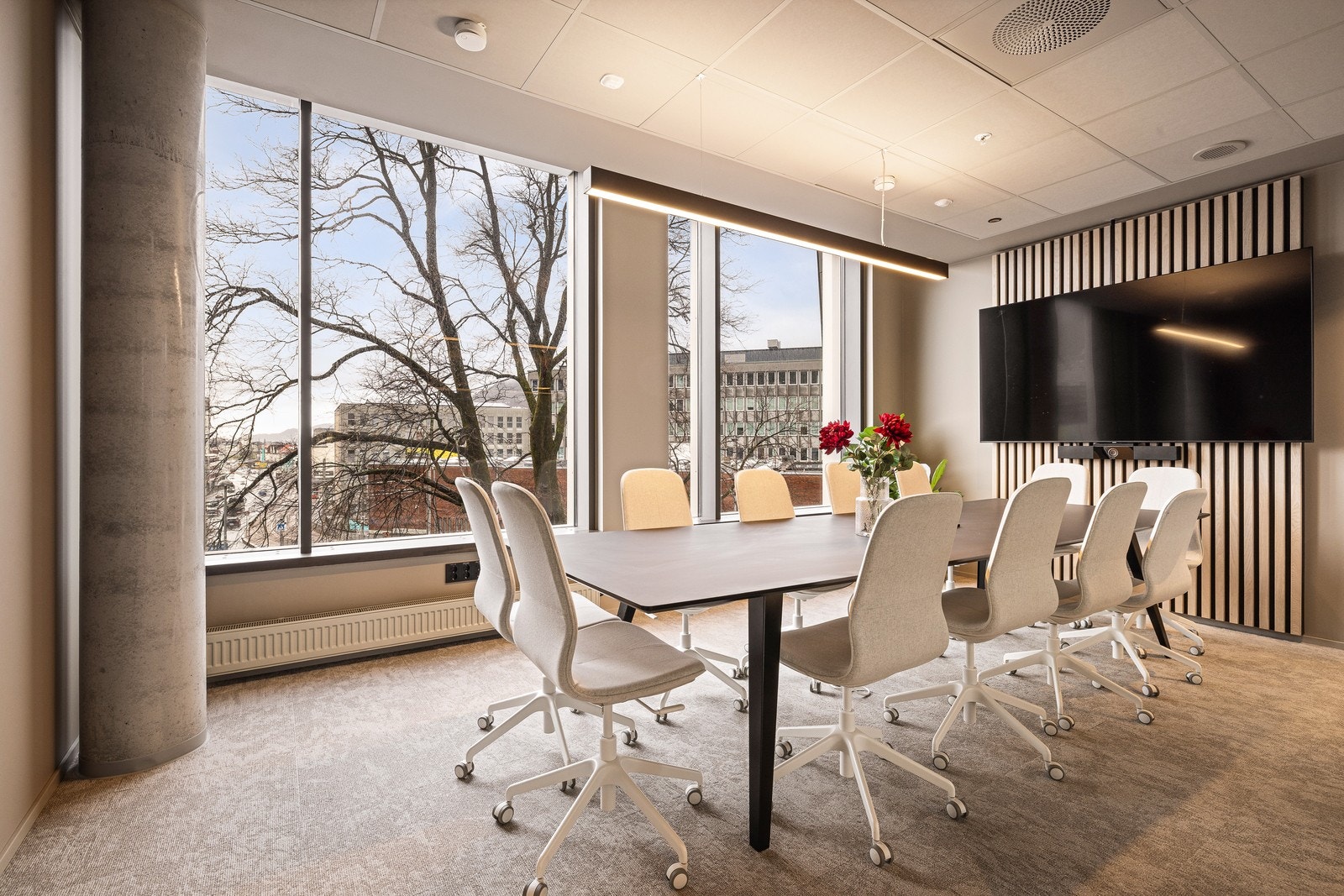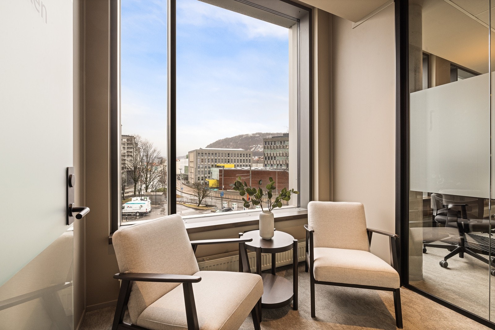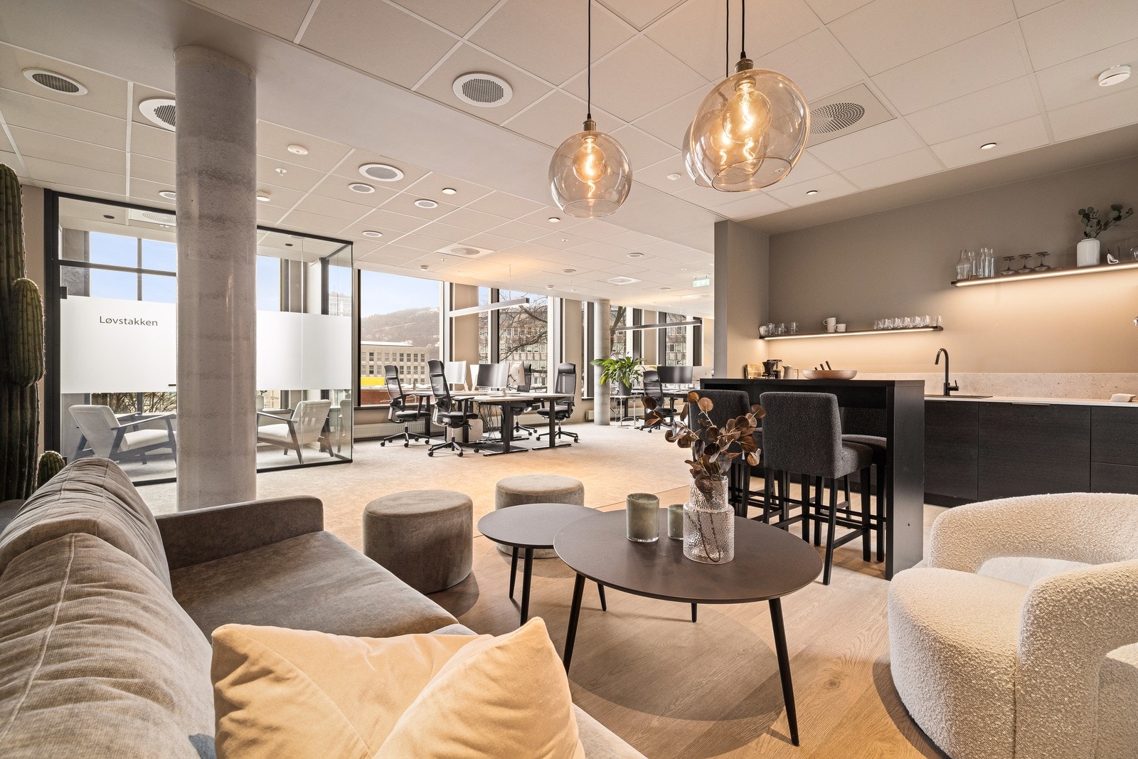 Her tilbys lyse og innbydende arbeidsomgivelser med gjennomgående høy kvalitet i materialvalg og utførelse. Lokalene er innredet med en kombinasjon av åpent landskap, møterom og støtterom – ideelt for virksomheter som ønsker effektive, representative og inspirerende arbeidsflater.