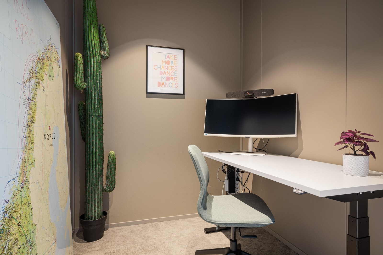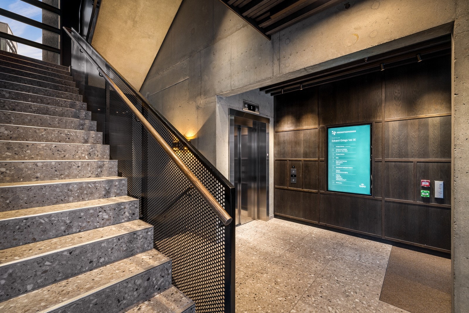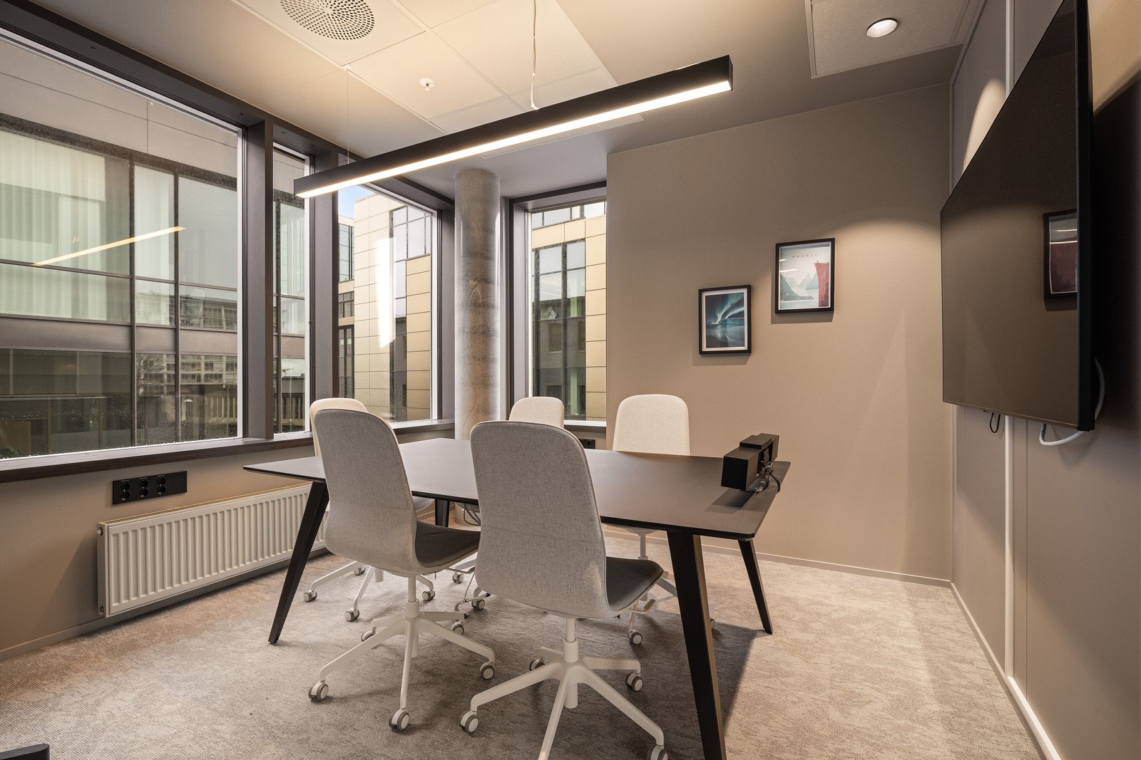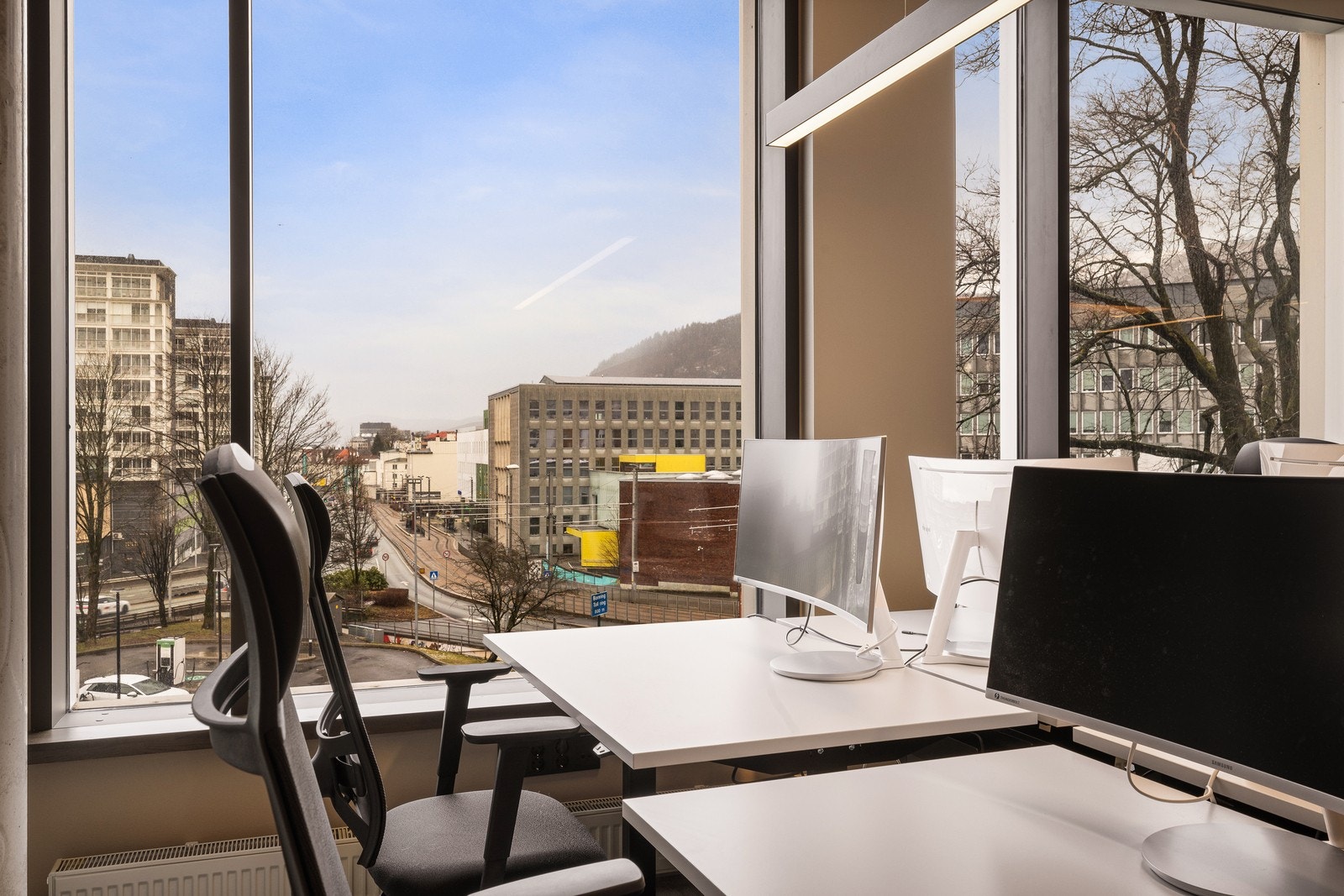 Her tilbys lyse og innbydende arbeidsomgivelser med gjennomgående høy kvalitet i materialvalg og utførelse. Lokalene er innredet med en kombinasjon av åpent landskap, møterom og støtterom – ideelt for virksomheter som ønsker effektive, representative og inspirerende arbeidsflater.